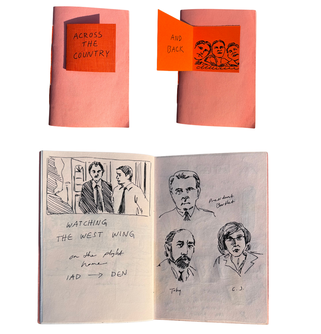 Watching old television. Gray days are perfect for becoming invested in a TV show that ended 20 years ago. For me, right now, it is The West Wing. See my character sketches, done on the long flight back to California from DC. If you’d like to see more of this book, I shared about it in this video.